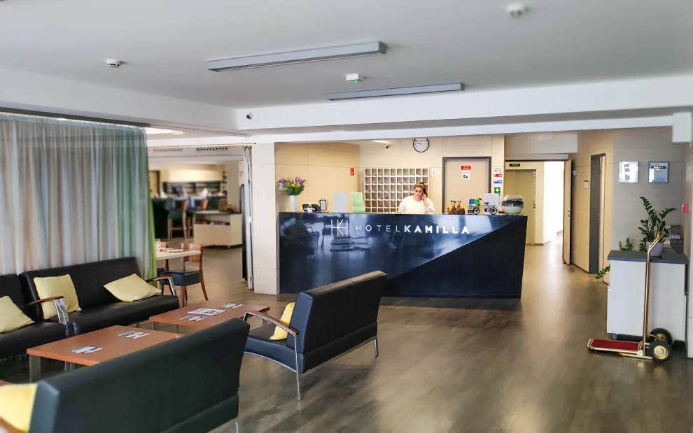 Na prvý pohľad pôsobil Hotel Kamila **** moderne a recepčný, ktorý nás privítal svojím úsmevom, skvelý dojem len umocnil. Potom, čo sme dostali kľúč, nás ochotne informoval o hotelových službách a presnom obsahu balíčka. Pomocou brožúr a máp sa potom podelil o tipy na miestne zaujímavosti a odporučil nám bezplatné použitie bicyklov - tiež sme boli informovaní o cyklotrasách v meste aj v jeho okolí.