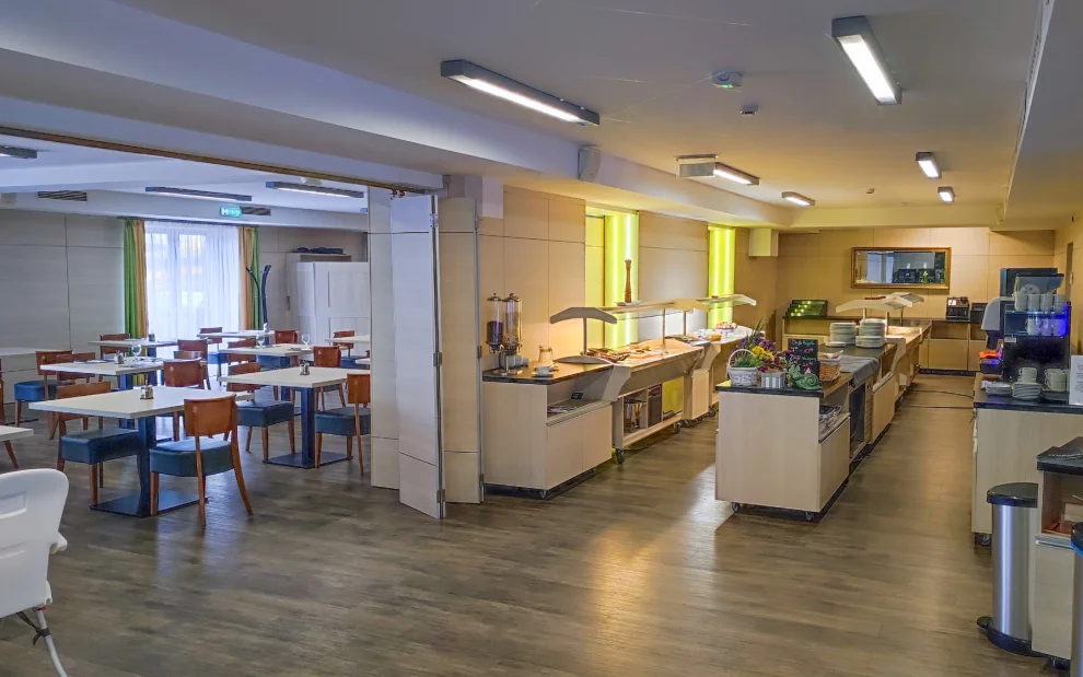 V balíčku sme mali polpenziu v hotelovej reštaurácii, v ktorej nás hostila veľmi príjemná a pozorná obsluha. Každé ráno nás čakali typické raňajky formou bufetu v maďarskom štýle. Ponuka studených jedál obsahovala výber rôznych salám, syrov, zeleniny a ovocia. Medzi teplými jedlami sme si mohli vybrať napríklad kašu, miešané alebo vyprážané vajcia, párky či hot dogy. Smäd sme hasili tromi druhmi džúsu, čajom a kávou na rôzne spôsoby. Pre maškrtné jazýčky bolo na stole pečivo, rôzne zákusky, džemy a med.