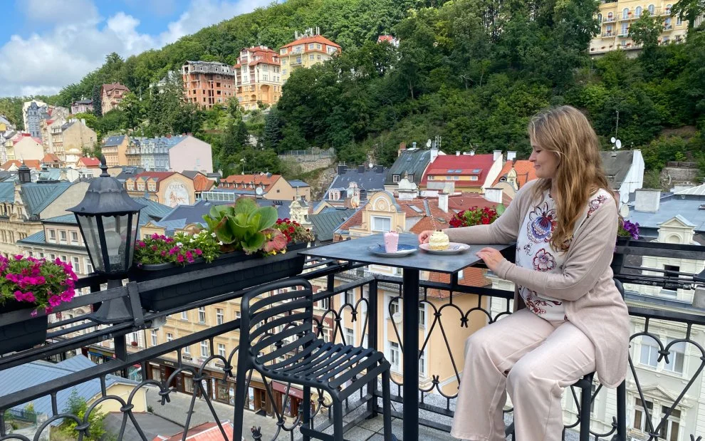 - Kavárna v Zámecké věži – Počas prechádzky sme sa zastavili na kávu a zákusok v tejto kaviarni, ktorú nájdete v gotickej veži pri Tržnej kolonáde. S vynikajúcou kávou a zákuskom sme sa pokochali s úchvatným výhľadom na kúpeľné centrum.