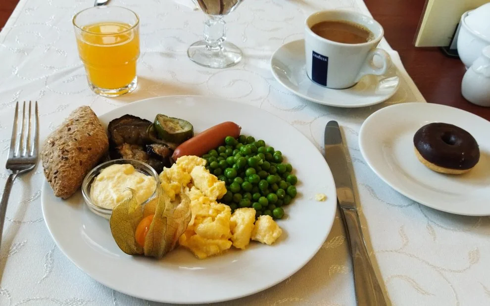Súčasťou nášho pobytu bola polpenzia formou bufetu, ktorú sme si mohli vychutnať nielen v hotelovej reštaurácii, ale aj na terase s krásnym výhľadom. Raňajkový bufet potešil ako milovníkov klasiky, tak aj tých, ktorí si strážia zloženie svojho jedálnička. Dať sme si mohli napríklad párky, slaninu, vajíčka na rôzne spôsoby (miešané, volské oká, omelety), nátierky, pečivo, syry, údeniny či vynikajúce obložené chlebíčky. Nechýbali ani bezlepkové a bezlaktózové varianty, jedlá pre deti či sladké raňajkové dobroty ako palacinky, cereálie, jogurty, dezerty, a dokonca aj ovocné knedle. Príjemne ma prekvapila skutočne pestrá ponuka ovocia a zeleniny. Z nápojov sme si počas raňajok mohli dať ovocné šťavy, čaje a kávu (filtrovanú alebo z kávovaru).