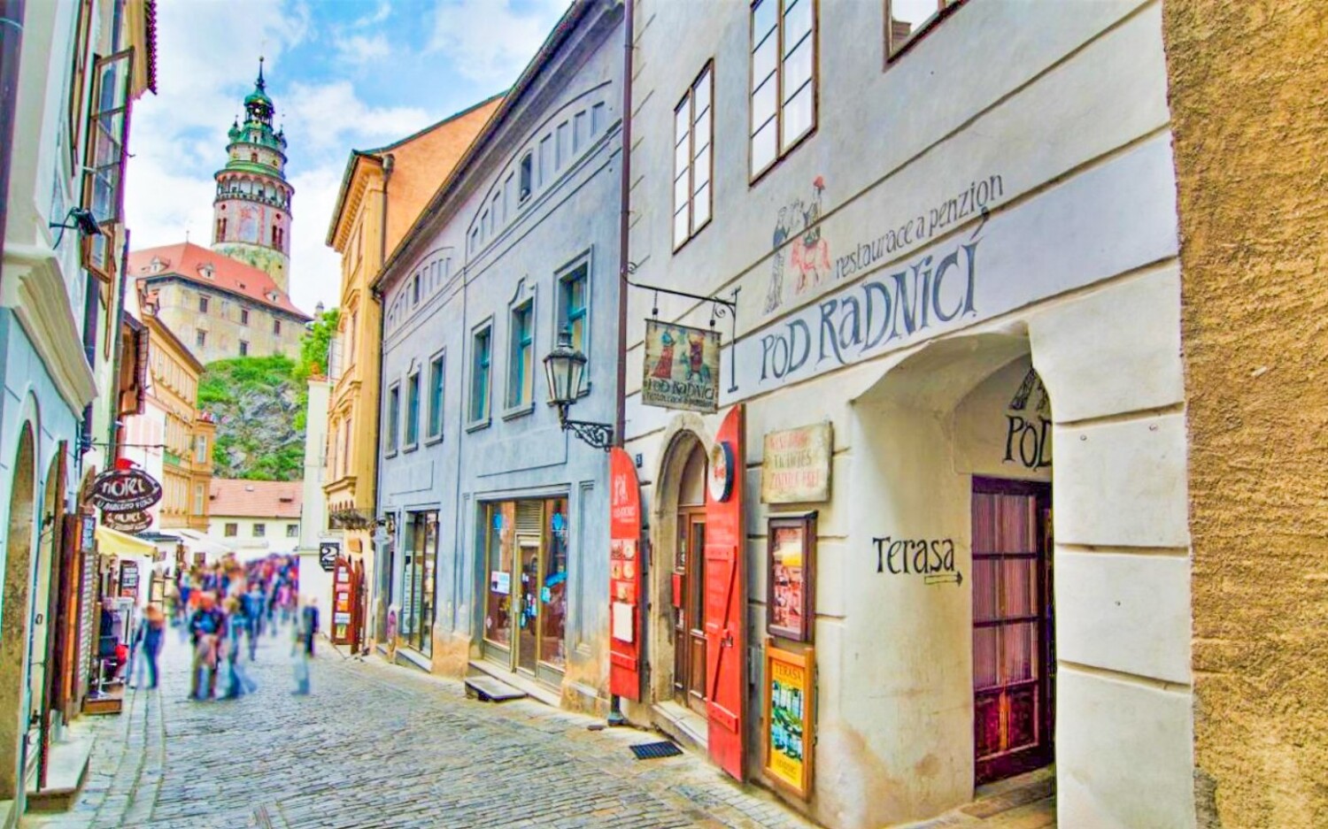 Vďaka umiestneniu v najstaršej časti mesta si budete rozprávkovú atmosféru Českého Krumlova vychutnávať aj v bezprostrednom okolí hotela. Nádherné námestie Svornosti lemované stredovekými meštianskymi domami je od penziónu vzdialené len 40 m. Ak sa po pešej zóne vyberiete opačným smerom, cez Lazebnický most (70 m) sa dostanete k areálu hradu a zámku Český Krumlov (120 m). Prekrásny výhľad na mesto a jeho okolie budete mať zo zámockej veže, ktorá je dominantou aj symbolom Českého Krumlova. Oplatí sa vidieť aj letohrádok Bellarie (1 km) a otáčavé hľadisko, kde prebiehajú divadelné predstavenia v unikátnom prostredí zámockej záhrady. Pobyt si môžete spestriť aj návštevou krumlovských múzeí, ako je napríklad múzeum tortúry (50 m), múzeum voskových figurín (160 m), múzeum vltavínov (70 m) alebo múzeum historických motocyklov (100 m). Netradičným zážitkom je aj prehliadka grafitovej bane v hĺbke 70 m pod povrchom mesta, ktorá poskytuje ukážku ťažby a zvezenie banským vláčikom.