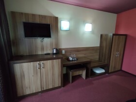 Starší zařízení hotelu, velmi hlučné ventilátory v koupelně a na WC které se rozběhnou ihned po rozsvícení, chybějící držák sprchy v koupelně, Vinikající strava v restauraci u Vodníka, vstřícnost personálu na jedničku.
