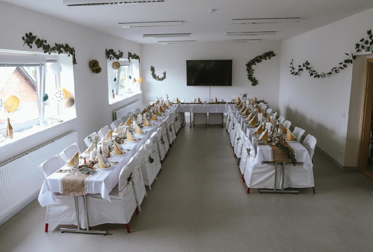 V případě svatby či oslavy je možnost využít slavobránu, zahradní stoly a lavice.