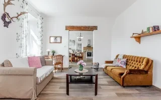 Chalupa k pronajmutí poskytuje ubytování pro 15 osob ve 4 ložnicích.