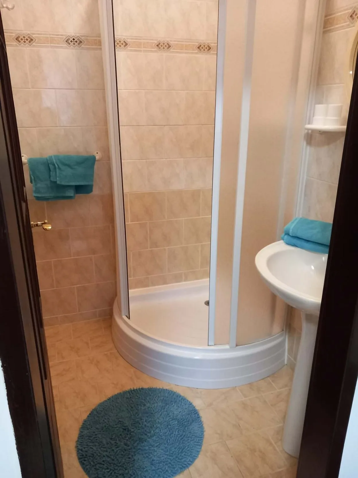 Koupelna se sprchou a wc.