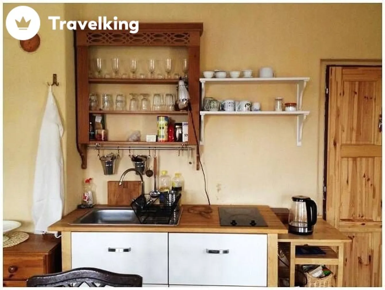 Výletní pokoj s příslušenstvím má kuchyňský kout vybavený k jednoduchému vaření, bez trouby a mikrovlnky, který využijí hlavně ti. kteří nejsou zvyklí stravovat se v restauracích během svých výletů.
