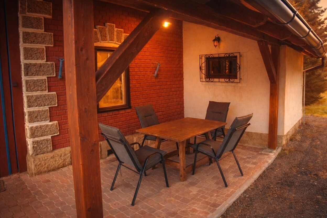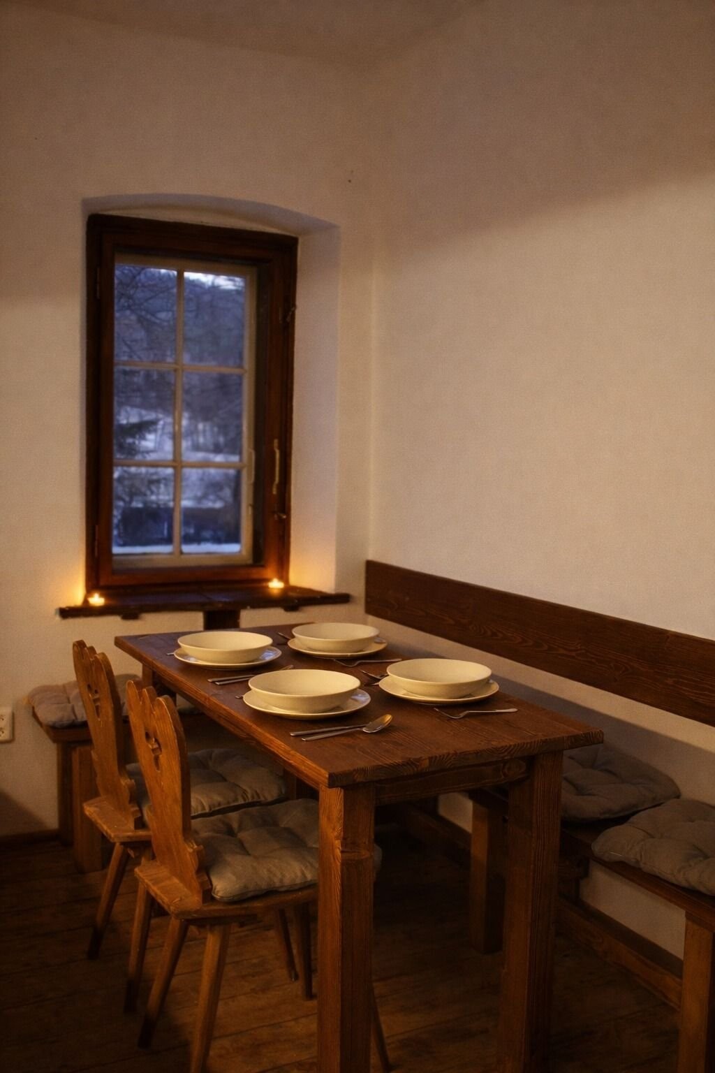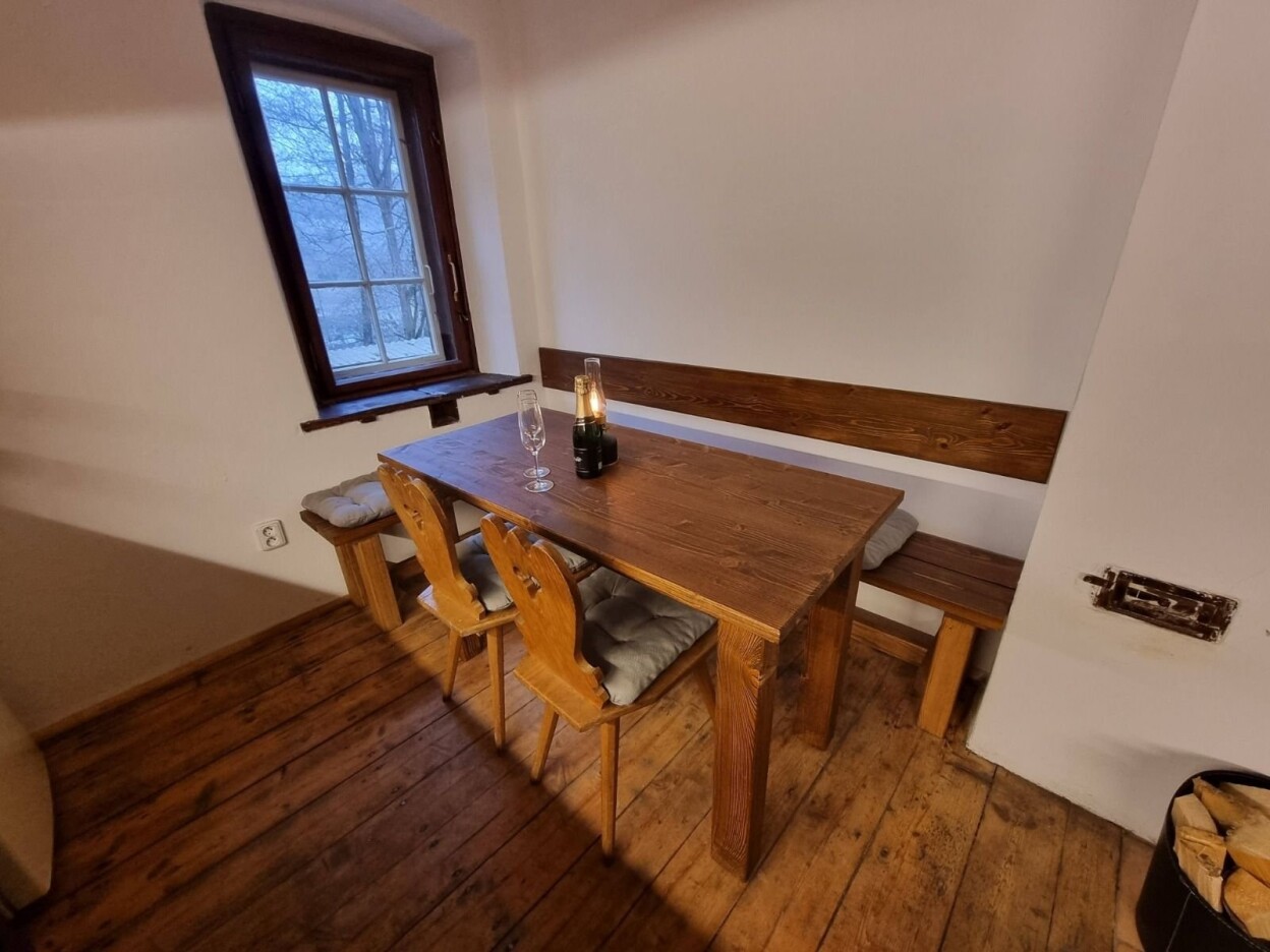 Wechtr má vstupní předsíňku, kuchyni, ložnici a koupelnu. V kuchyni jsou kamna na dřevo, jejichž součástí je i trouba a plotna. Oheň v kamnech Vám vykouzlí neuvěřitelně útulnou atmosféru. V kuchyňce naleznete samozřejmě čtyřplotnovou indukční varnou desku, nádobí, příbory, koutek pro přípravu kávy s kávovarem, lednici, mikrovlnnou troubu, topinkovač a rychlovarnou konvici. V ložnici najdete velkou pohodlnou postel s nejlepšími matracemi, polštáři a přikrývkami. V koupelně, kde je WC, umyvadlo a vana, najdete i fén Valera. Součástí wechtru je venkovní posezení kryté přístřeškem. Po celém objektu je k dispozici Wi-Fi připojení.