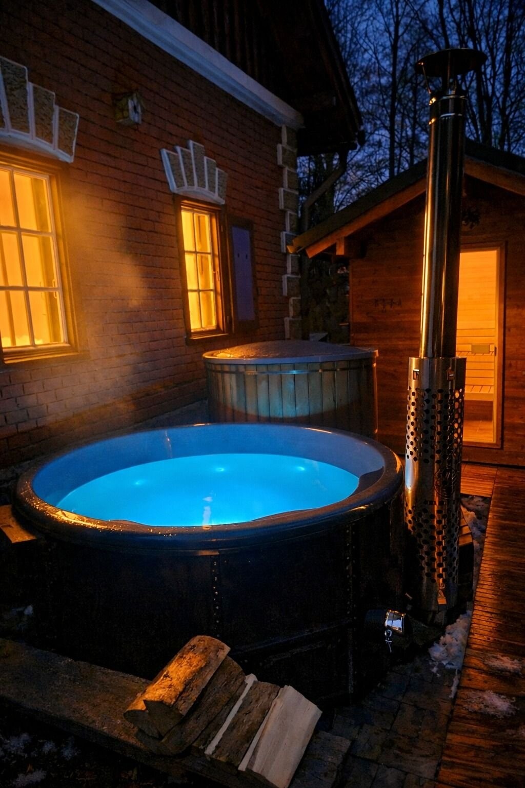 Finská sauna s elektrickými kamny a nádherným výhledem na vzrostlé stromy, které Vás obklopují, obrovská ochlazovací káď a koupací sud jsou zárukou dokonalé regenerace. Ochlazovací káď je hned při východu ze sauny (v extrémních mrazech ochlazovací káď z technických důvodů nenapouštíme). Voda v koupacím sudu s vířivkou a osvětlením se ohřívá pomocí kamen na dřevo. Jedinečným zážitkem je noční koupání s hvězdami nad hlavou. Na našem wechtringu jsou pro Vás připraveny ručníky, osušky, sprchový gel, mýdlo, toaletní papír, prostěradla do sauny, župany a jednorázová wellness obuv a další drobnosti.